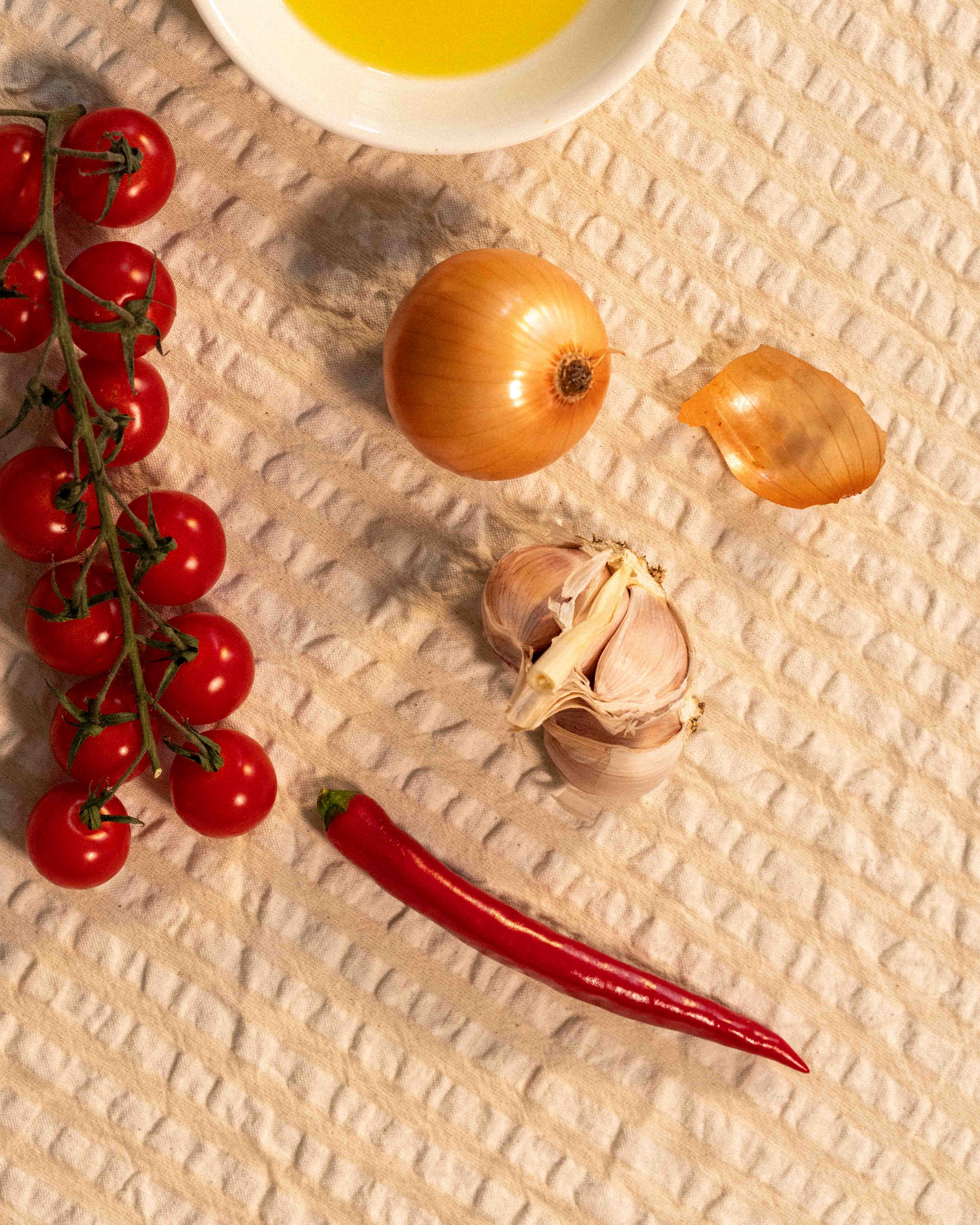 Tomato pulp, Tomato cubes, Tomato paste, Extra virgin olive oil, Salt, Garlic, Basil, Chili pepper, Citric acid (acidified).